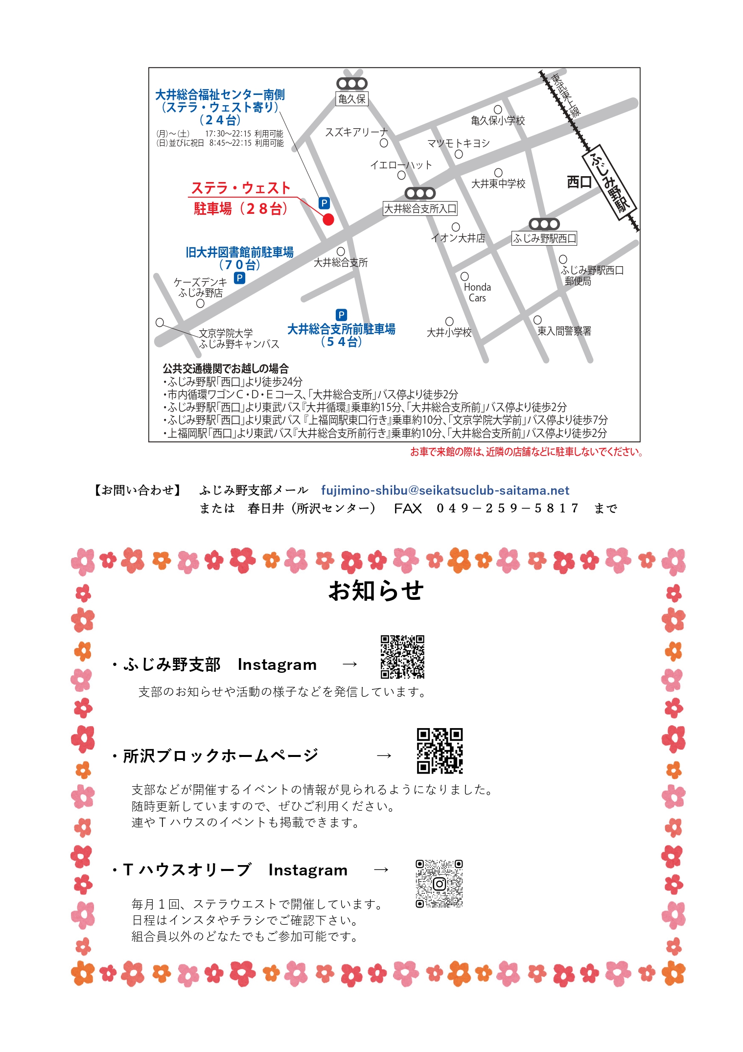 【お問い合わせ】ふじみ野支部メール mailto:fujimino-shibu@seikatsuclub-saitama.net