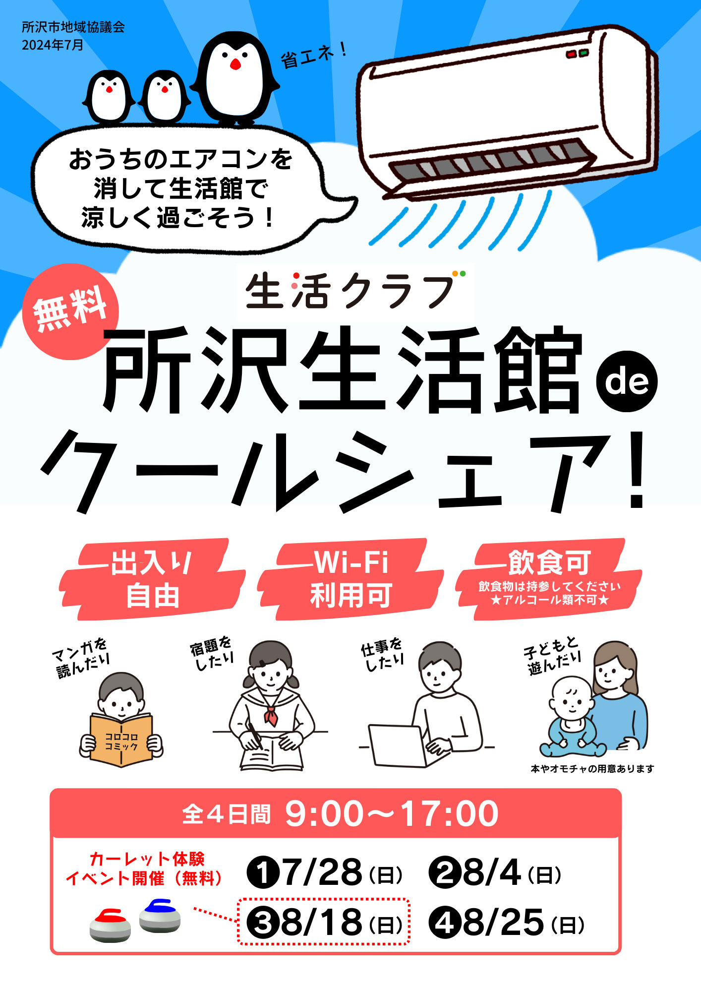 お家の電気を消して、所沢生活館で涼しく過ごしませんか?