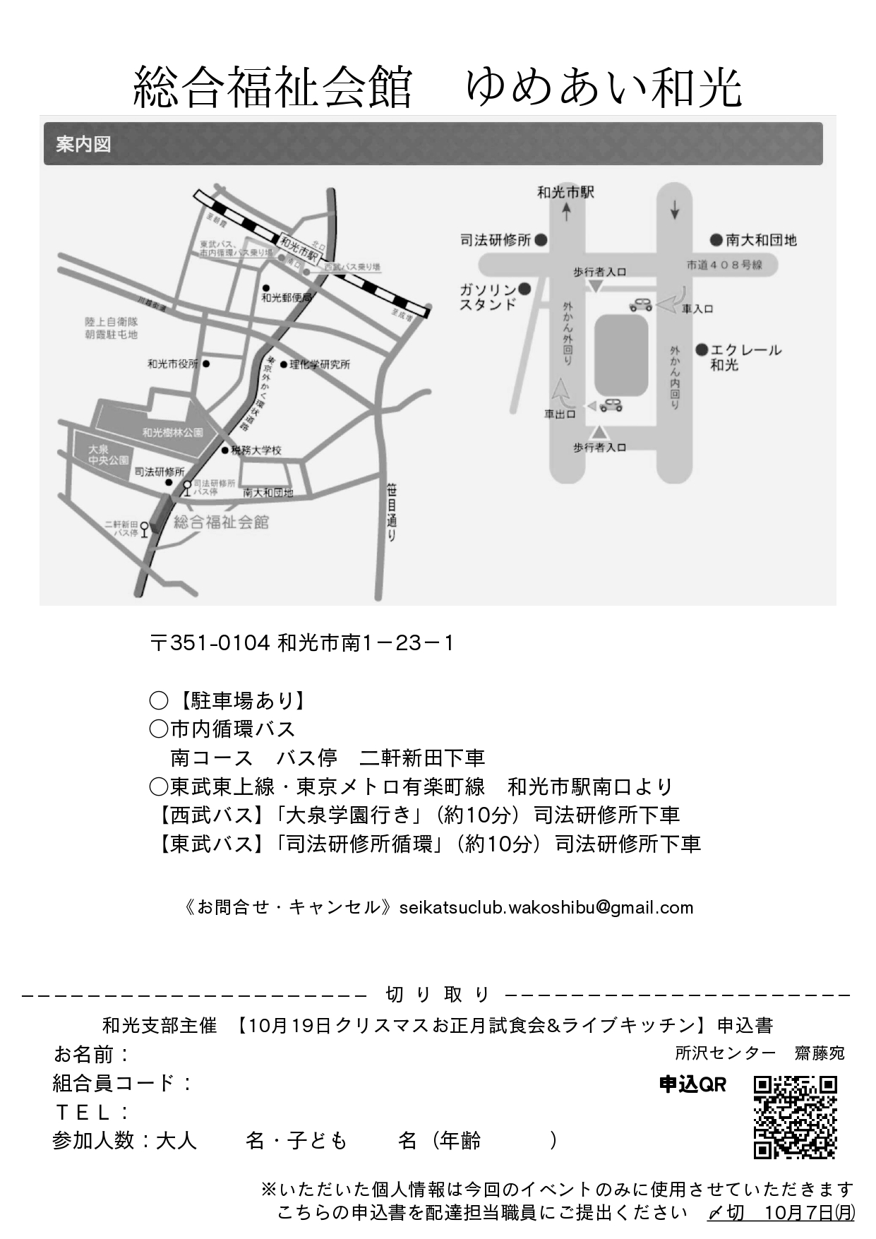 クリスマスお正月試食会&ライブキッチン【和光支部】