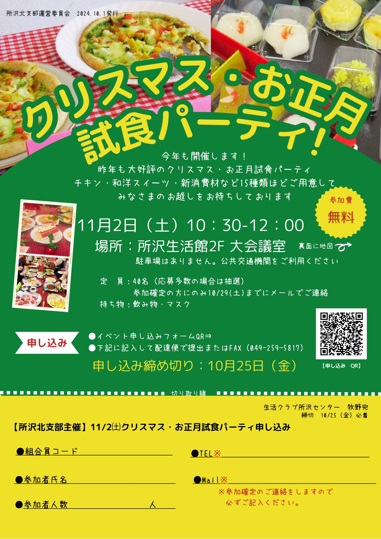↓お申し込みはコチラから↓ https://saitama.seikatsuclub.coop/contact/form/saitama/tokorozawa_xmas_oshogatsu.html