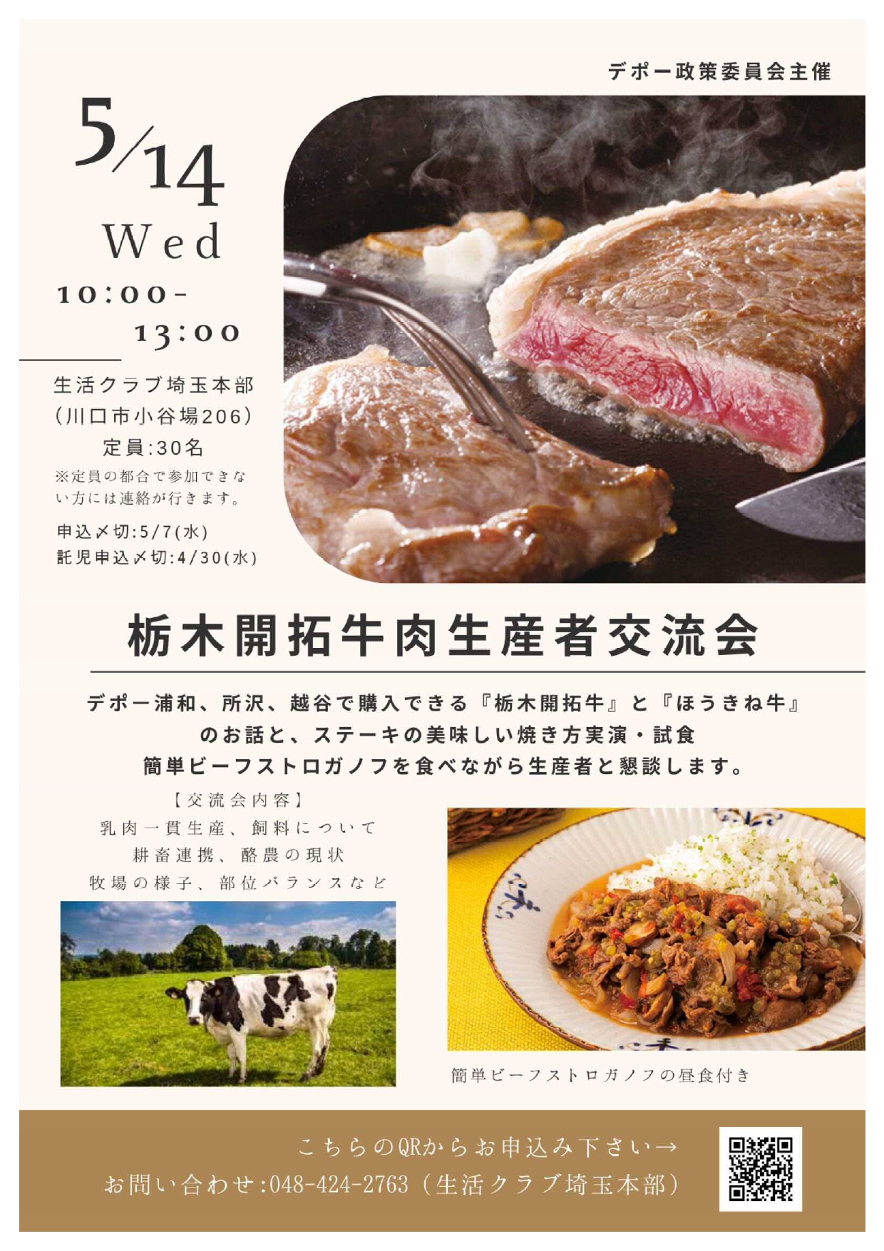 デポーで購入できる「栃木開拓牛」「ほうきね牛」のお話を聞いたあと、おいしい食べ方を伝授します。もっと牛肉が食べたくなること間違いなし!です。
