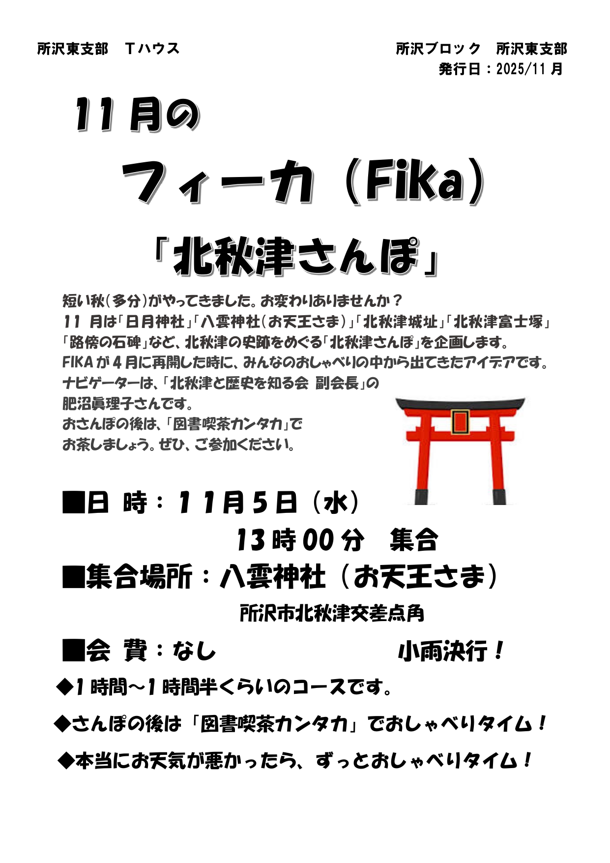 集合場所の「八雲神社」は「北秋津交差点角」、地図中の「赤いマーク」のところです。