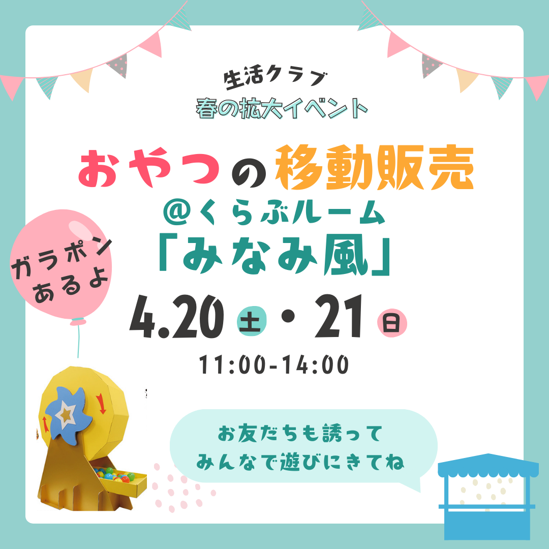 *移動販売はくらぶルームみなみ風で行います